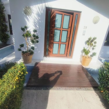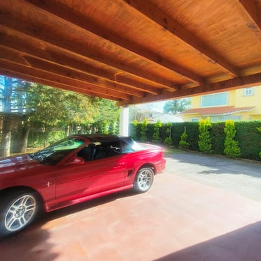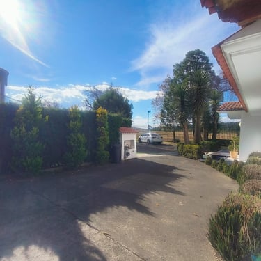 Desde el primer momento, la propiedad impone con su arquitectura clásica-contemporánea de techos de teja y amplios ventanales. El acceso principal es enmarcado por un espejo de agua que transmite serenidad inmediata. La cochera tiene capacidad para 5 vehículos (dos de ellos bajo un sólido techado de madera de diseño), ideal para coleccionistas o familias activas.