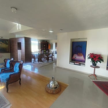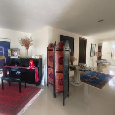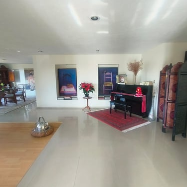 Triple Estancia Social: Tres salas independientes amuebladas con piezas de gran gusto, incluyendo un área de recepción con piano, perfecta para veladas culturales.