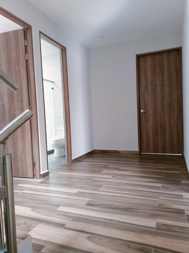 En el nivel superior, la recámara principal con baño completo y walk in closet, es un refugio de privacidad y confort, diseñado para ofrecer tranquilidad. Las dos recámaras secundarias, equipadas con closets, comparten un baño completo, proporcionando funcionalidad y espacio para toda la familia. Este nivel está diseñado para maximizar la intimidad y el descanso.