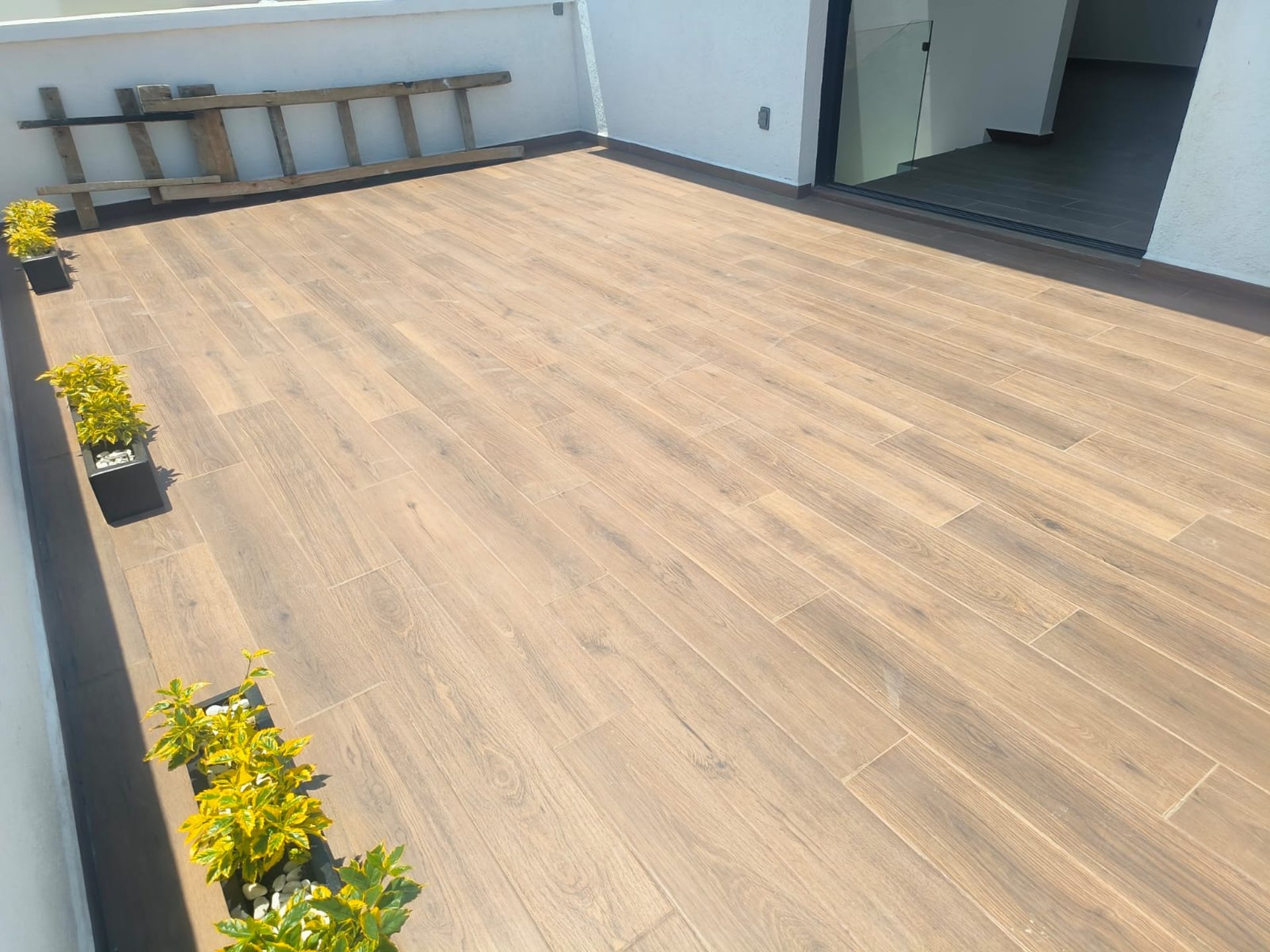 Subiendo a la planta alta, encontrarás un family room perfecto para disfrutar de noches de cine o juegos en familia, además de un medio baño y una amplia terraza para disfrutar de las vistas.