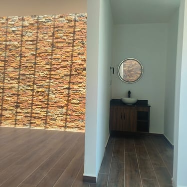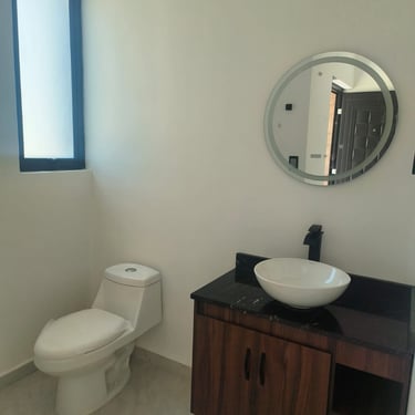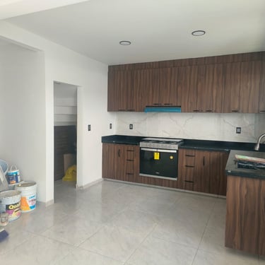 Al entrar, serás recibido por una amplia sala y comedor que invitan a la convivencia y a momentos especiales. El medio baño para visitas es ideal para tus invitados, mientras que el estudio ofrece un espacio perfecto para trabajar o estudiar desde casa. La cocina totalmente equipada es un sueño hecho realidad para cualquier amante de la gastronomía, con estufa, campana extractora, tarja de acero inoxidable e isleta central, además de una práctica alacena bajo la escalera.